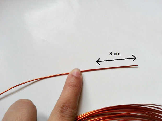 Medir y mantener 3 cm del recto de alambre que terminan y luego doblar el alambre con los alicates bucle tal como se muestra en la imagen,