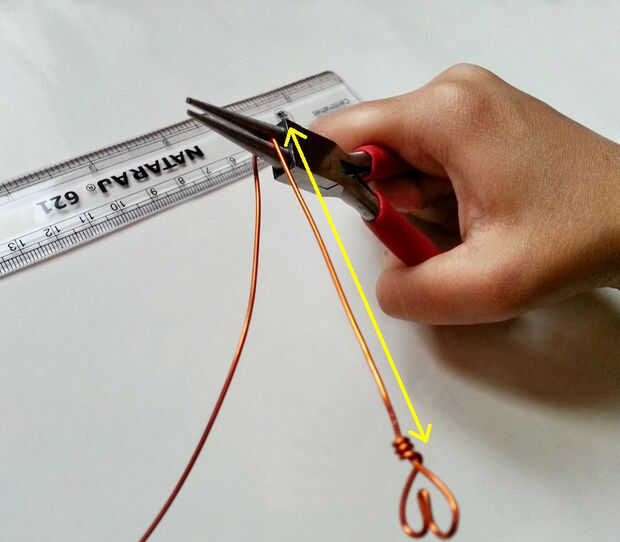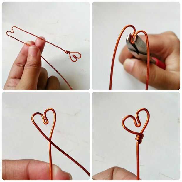 Después de hacer el segundo corazón, envolver el alambre extra alrededor de la parte recta y corte el cable del paquete.