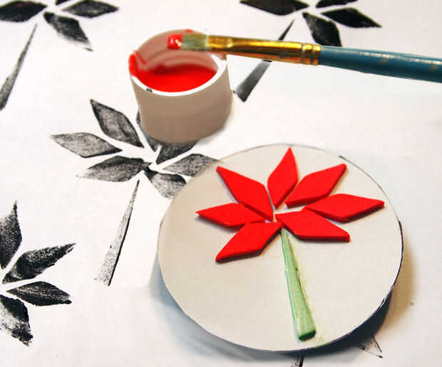 aquí es un proyecto fácil y rápido para hacer sellos de espuma con un apoyo pegajoso. Puede utilizar una almohadilla de tinta regular para estampar - o puede utilizar alguna pintura acrílica. Los sellos se pueden utilizar en papel o en tela.