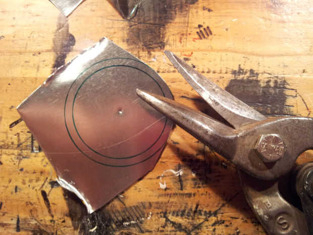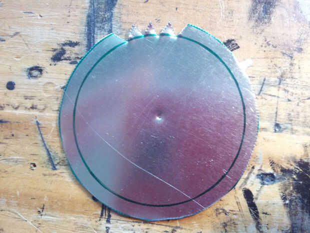 Ahora corte los dientes usando el cortador estaño utilizando el círculo como una guía.