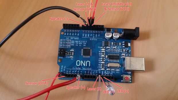 En este tutorial, te muestro cómo hacer un Simple laser sistema de seguridad con Arduino.Paso 1: Se necesita: HardwareLEDLáserFotoresistorZumbador piezoeléctricoBreadboardsArduino unoResistencia de resistencia 10Ω220Ω resistencia para led.Puente de a