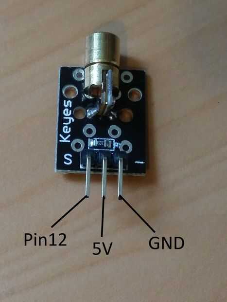 Sugiero usar cables más largos para conectar el módulo del laser, ya que probablemente se coloque al otro lado de la habitación / puerta.