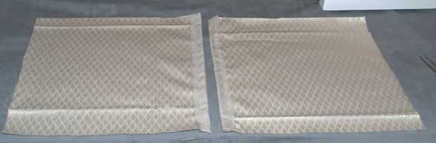puede hacer un par de fundas con estilo (U.S.: fundas de almohada) de una bufanda con flecos.  Si la bufanda tiene un patrón grande, debe tener al menos 5 repeticiones del patrón (P en el gráfico de "elegir una bufanda" más abajo) entre los márg