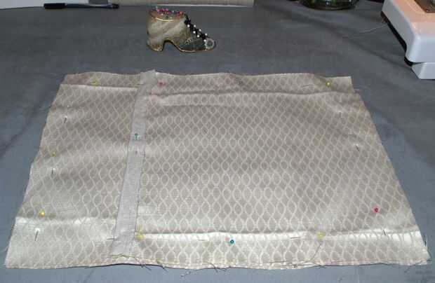 Coloque la pieza delantera derecha arriba y coloque las dos piezas de la espalda con el lado derecho hacia abajo. Alinee las esquinas con las piezas de la espalda superpuestos en el interior dobladillo (Esto creará la abertura de la almohada). Prender a lo largo de los bordes exteriores, procurando no estirar a la tela (si se estira a la tela que hará que la almohada a encoger).