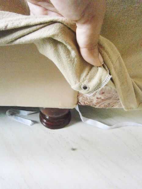 Me di cuenta que a veces al sentarse y levantarse del asiento obtiene todos doblada otra vez. No contento con esto. Así que mientras navegan por la red vino accros este video! resuelto el tema como la magia:-). La idea es muy simple pero eficaz. Todo lo que hacemos es utilizar un tallarín de esponja en las grietas. Esto mete en el tejido agradable y apretado. Para asegurarse de que la tela no se le para arriba perforado algunos ojales en bajo en el tejido extra de la funda del asiento y corrí un cordón a través de él y ataban a las piernas. Esta forma en el sofá se veía agradable apretado y muy profesional buscando (si lo digo yo!) Realmente en este punto yo estaba tipo de muy orgulloso de mí mismo. Todas las habilidades de costura tengo realmente está documentado en instructables. así que si usted echa un vistazo mi instructables sabes es muy básico!