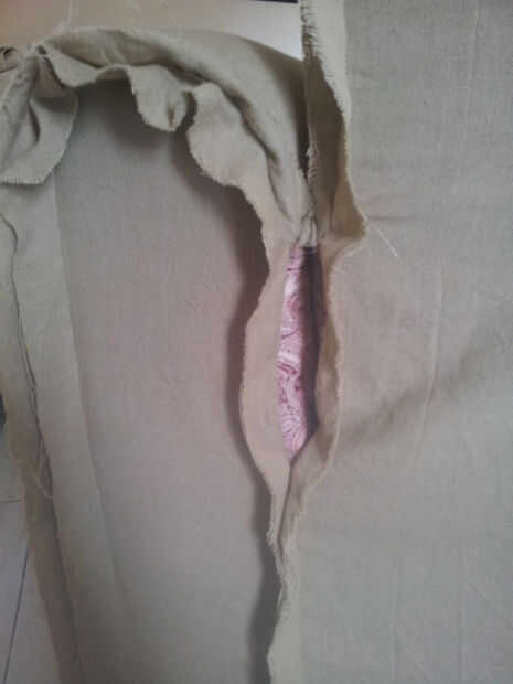 Así que fui de costura, el ARBP y todo cosido. Afortunadamente, dado vuelta adentro hacia fuera y comenzó el montaje de mi silla. El frente era perfecto. Vengo a la parte posterior y ver ' ARRR, ¿qué pasó? ¿Cómo puede ser esto??'