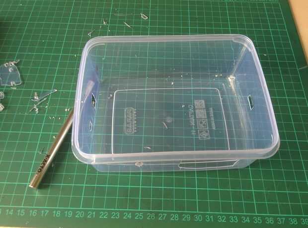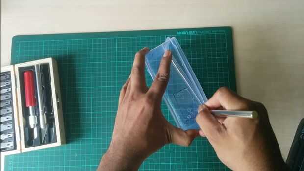 Luego recortar la parte marcada por un cuchillo de la manía o una Dremel. Hacer agujeros con un taladro.