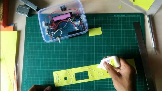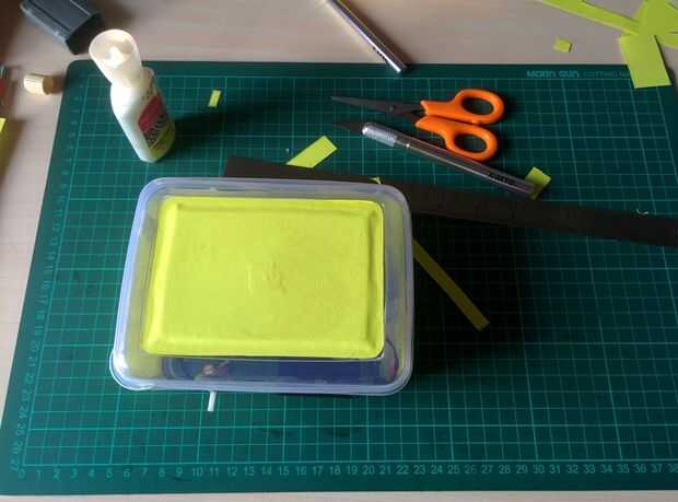 Finalmente pegue una tira rectangular de papel a la parte superior del recinto.