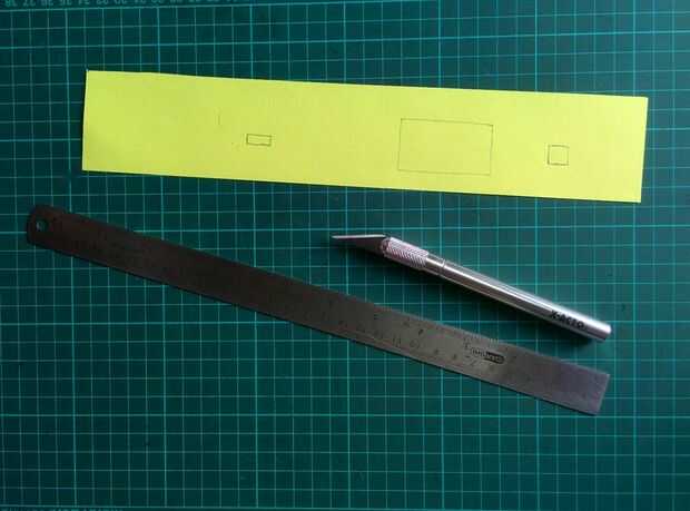 Luego corte la porción rectangular según el tamaño del esquema componente. Yo uso mi cuchillo Exacto para hacer esto.
