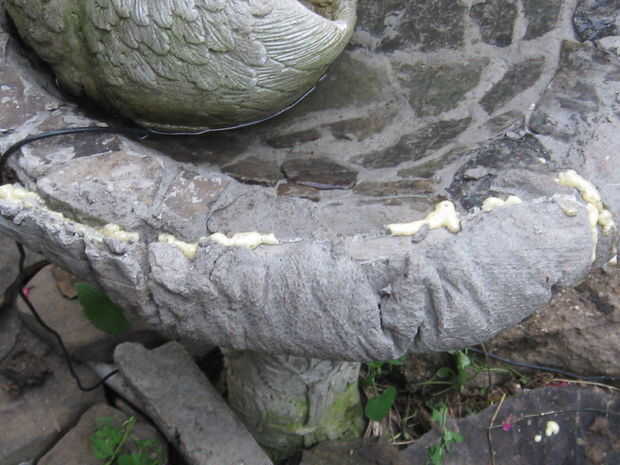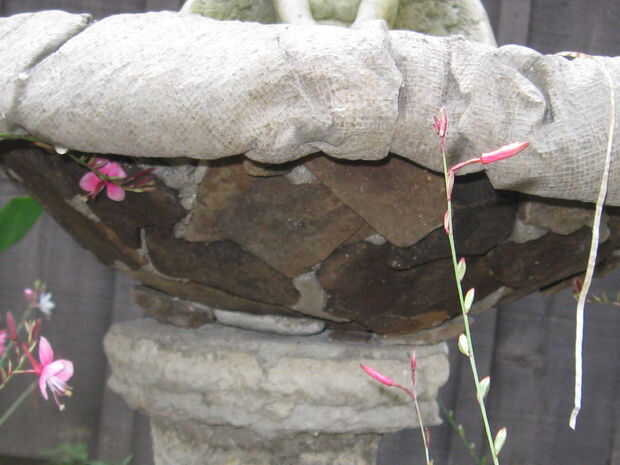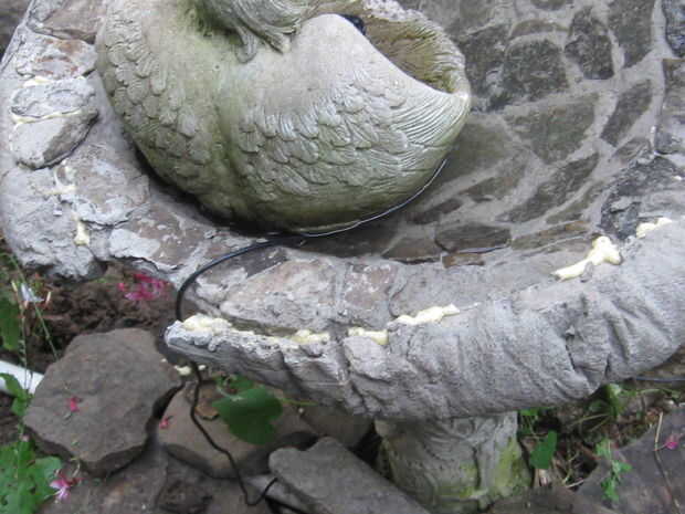 El borde no era muy grueso y rompió la llanta de la dona en un par de piezas de molde pero todo y funcionó hacia fuera, algun pegamento del gorila y algunas abrazaderas celebradas lo consiguió de nuevo juntos. Equilibrar el tazón sobre el pilar que tenía que nivelar con cierta izquierda sobre rocas planas. Añadir su estatua en la mitad posterior de la taza.