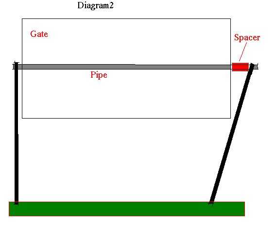 La tubería de 1" se ha deslizado en la tubería de 2", el espaciador puesto en marcha, la puerta se levanta para arriba y el tubo de 1" atornillados a los postes.