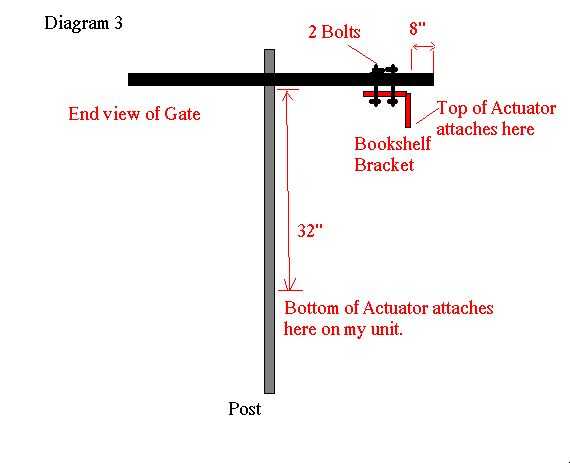 La parte inferior del actuador se conecta al Post unos 32" abajo de la puerta.