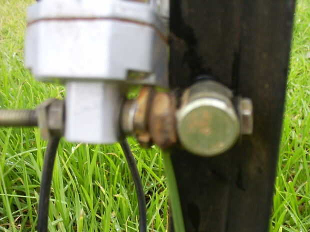 Para hacer la unidad no estacional regulable como lo hice con los 2 mensajes de piquete son martillados verticalmente en el suelo unos 10 pies 6" aparte en una alineación norte-sur.