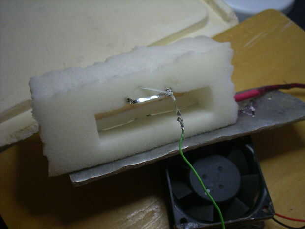 Montara un ventilador pequeño 12v (fuera de un PC) en mi tablero de soldadura para tomar los humos lejos de mi cara.
