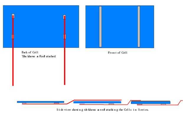 Para ello las células (untabbed) deben ser fichas debe tener alambre de ficha plano soldado a la parte delantera (negativa) y luego hacia atrás (positivo).