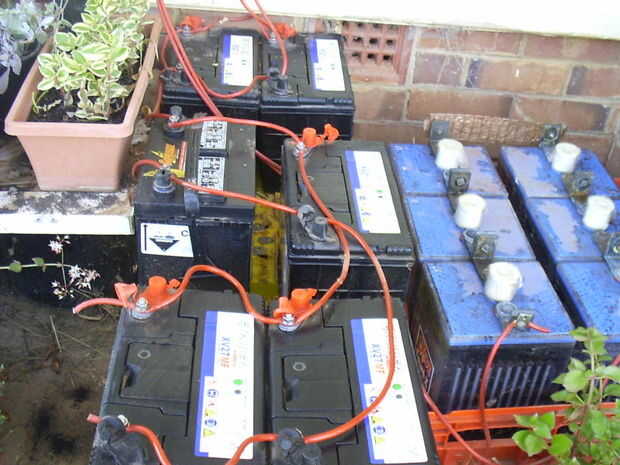 eBay golpeó de nuevo y me encontré el nuevo dueño de baterías de 6 x 2 voltios 225amp hora. Estos se unen en serie (positivo a negativo) a 12v.