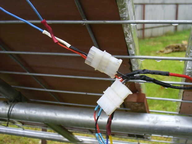 Usé conectores "Molex" (reciclados de PC vieja) y alambre de 2,5 mm a mis paneles al sistema.