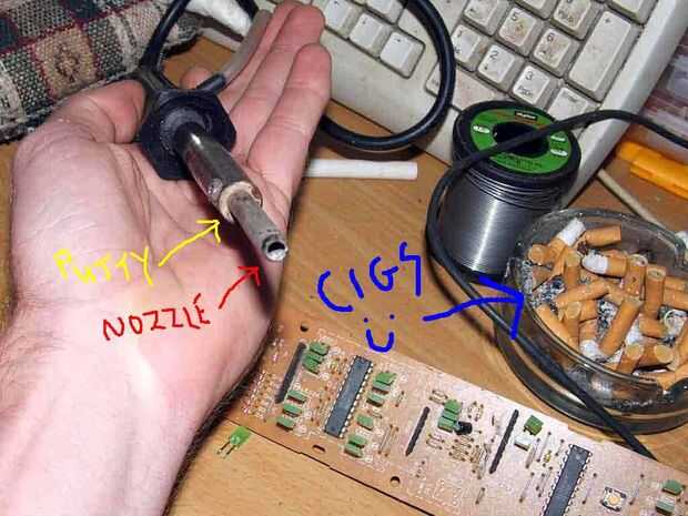 Resumen: Marqué en la manija de la tapa de plástico donde habría un hueco para que me taladre un agujero e introducir algunos tubos una vez que la unidad era junto. Más adelante bombear aire a través de este tubo. Esto era importante para hacer bien, usé pinzas y algunas marcas para conseguir la longitud adecuada. El siguiente problema que encontré fue conseguir una boquilla para la punta. Invierte el interior eje anteriormente utilizado para el elemento de calefacción y dremelled la brida y se ajusta perfectamente. Ahora tengo una boquilla!! Siguiente paso fue utilizar un inyector de mi acuario que encaja en el mango y también montar el tubo de plástico que el aire que fluye a través de él. Taladré un agujero donde "X" marcado el terreno, teniendo cuidado de que no tenía demasiada presión sobre el taladro. Hubiera hecho esto con el gutz quitado pero sentía que podía salirse con no perforar las tripas si era cuidadosa. Este arreglo trabajó, pero sólo es temporal ya que quiero ver si el concepto trabajado. Más adelante añadiré algunas retención mecánica aquí mediante un niple de tornillo o algo. Con el hierro de la soldadura casi totalmente junto, que necesitaba abordar la cuestión de entrar aire en la cosa. No tuve ninguna bomba de aire usada para un acuario. Tengo un acuario, pero no usarlos, son tan ineficientes. Lo que tengo es los sopladores de aire de culo mal de las pistolas de aire caliente que me dio la descarga. Estos bebés son enormes en comparación con el tubo pequeño que tengo que correr en el hierro de la soldadura.