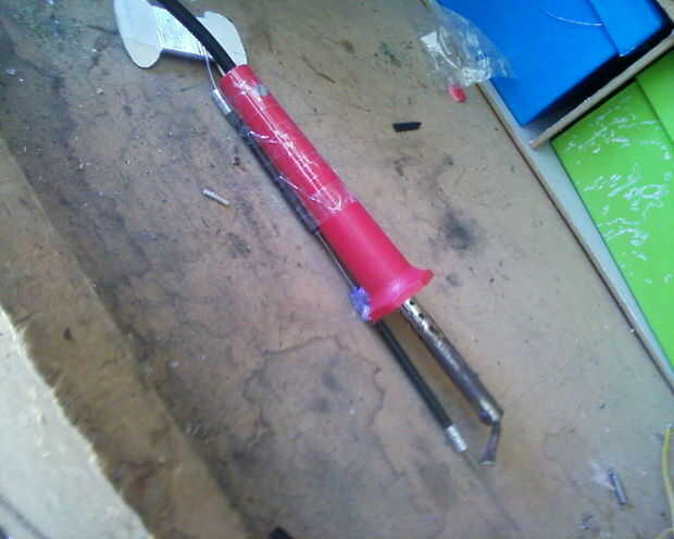 cuando estaba de soldadura, me di cuenta de que es difícil manipular las 3 cosas con 2 manos y que la soldadura (uno de ellos) sólo debe ser puesto en el frente del soldador, así que decidí hacer un dispensador de soldadura simple montado en el soldador que se podría utilizar con el una dedo oly , y esto a partir de ahí.