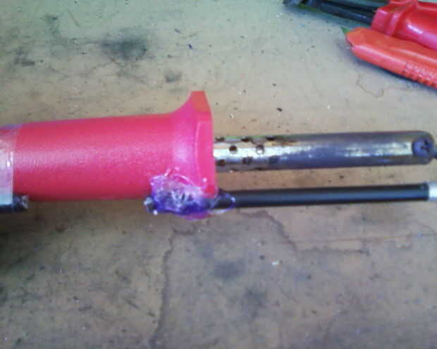 Hacer un corte en el mango de la manguera.
