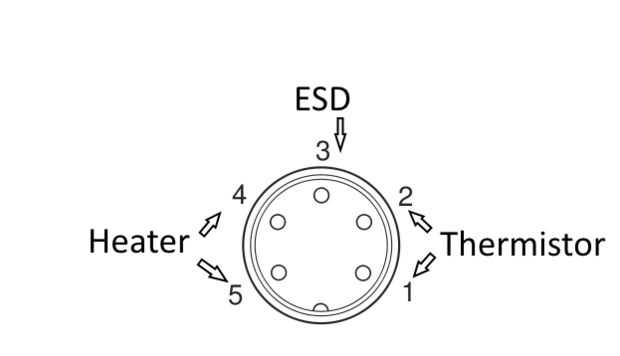 Los pines 1 y 2 corresponden a los cables del calentador de cerámica.