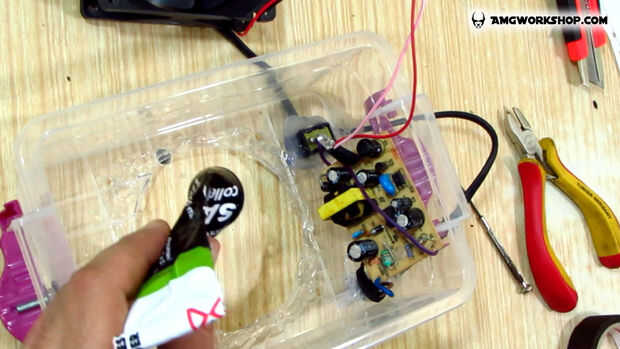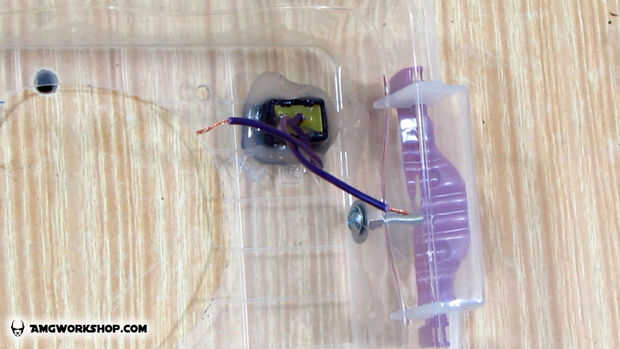 8. Ahora antes de que caliente pegamento la alimentación en su lugar agregar algún grifo eléctrico encima de la cabeza de los tornillos para evitar cualquier cortocircuito.