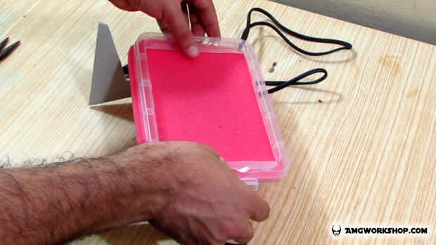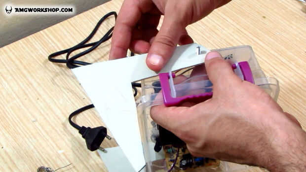 3. Coloque el interruptor de encendido en su lugar y sujétalo con pegamento caliente, el pegamento también sellará los huecos.