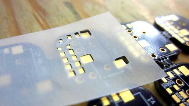 crear una plantilla de pasta de soldadura para un horno de reflujo o placa caliente es simple cuando usted tiene acceso a un cortador del laser.  Usé el cortador del Laser en mi local TechShop para crear esta y otras plantillas de PCB.Este Instructab