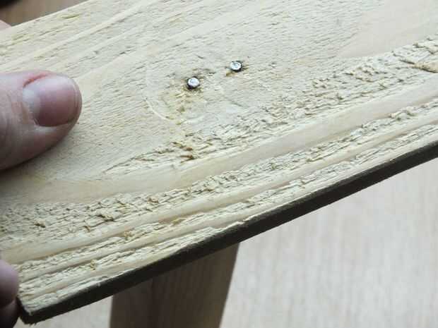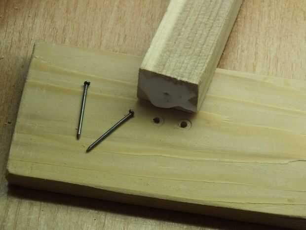 después de hacer dos agujeros en la parte de la base, para los clavos, pegamento, allí y luego atarlos juntos.