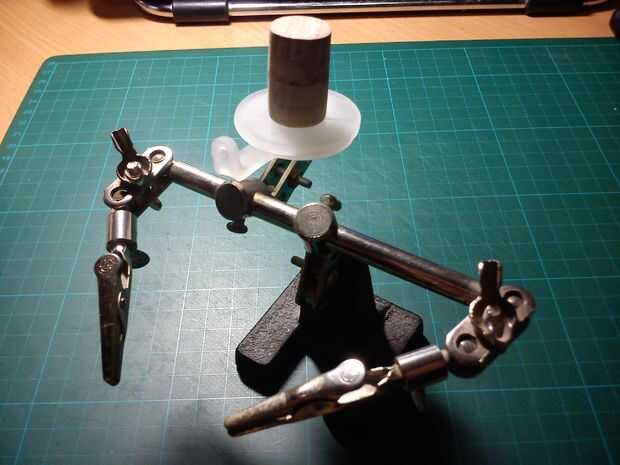 Si usted quiere mejorar su tercera mano, poner tubos termoencogibles en clips cocodrilo. Los ayuda a aislar de un cortocircuito entre el PCB y mejora el agarre. Una cosa más que puedes hacer, es poner un pequeño ventilador para extracción de humos. Es muy simple pero muy eficaz.