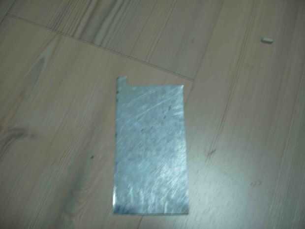 Cortar las chapas de 12 piezas. La medida debe ser una hoja rectangular de 2 x 4 pulgadas. Luego corte una línea por encima dejando un metal pequeño para el cable para conectarse.
