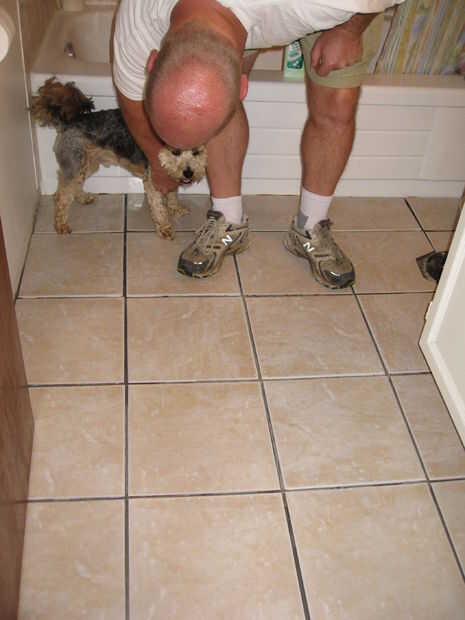 El Plan: Nuestro plan original era desgarrar el linóleo y los azulejos directamente contra el piso de cemento, sin embargo tuvimos que re ajustar nuestro plan más adelante. También tomar hacia fuera el inodoro viejo y se reemplazo con un nuevo inodoro de doble descarga eco.