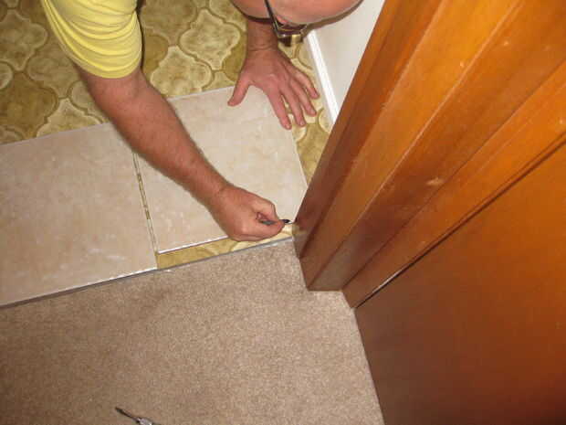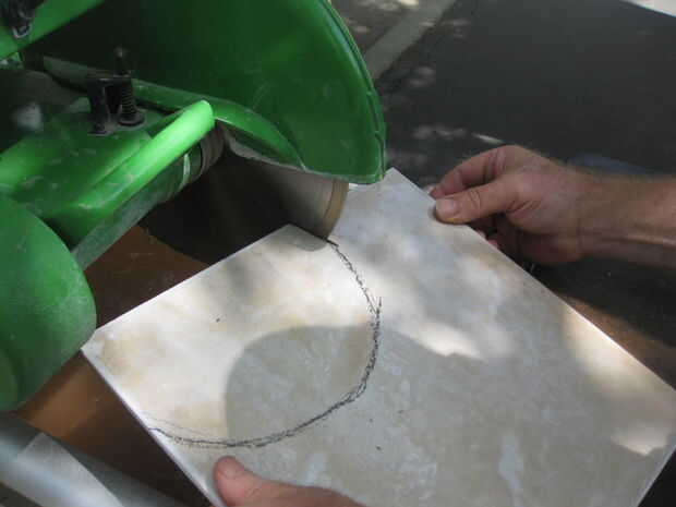 Begin by placing all the tiles that do not need to be cut into the room. a continuación comenzar marcando los azulejos que necesitan ser cortados con un crayón. Podría medir cuánto necesita cortarse apagado, sin embargo es más rápido colocar la ficha en el lugar que debería ser y marcándolos con un crayón. precisión absoluta no es necesaria, especialmente en habitaciones pequeñas. En habitaciones más grandes se puede necesitar un mayor nivel de precisión. En lugares es posible ocultar el borde de corte por debajo del gabinete y de pinotea voltear boca abajo el azulejo antes de medir. A continuación llenar a través de la sierra con agua y montar que la hoja, enchufe en la sierra y a una prueba para asegurarse de que está trabajando la bomba de agua, haciendo una prueba de corte de repuesto o azulejo roto también es una buena idea. A continuación la parte inferior de las baldosas de la etiqueta y eliminarlos desde el espacio. Utilizamos un sistema coordinado para que cada azulejo se puso nuevamente en el lugar correcto.