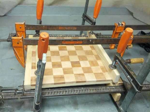 Encolar y sujetar la moldura en los lados de la Junta. Asegúrese de que está completamente nivelado y hay diferencias mínimas. Si hay lagunas, rellenarlos con masilla de madera cerezo