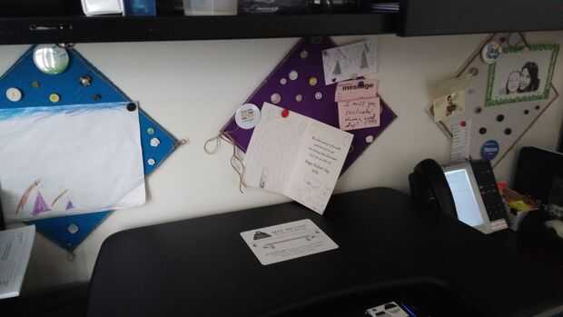 clavijas de empuje se utilizan generalmente para notas a un tablero de corcho. es estética y organizado, pero un tablero magnético es (en mi opinión) más aún, y es más seguro para los niños etc..Yo, personalmente, me gusta un diseño limpio y uniforme