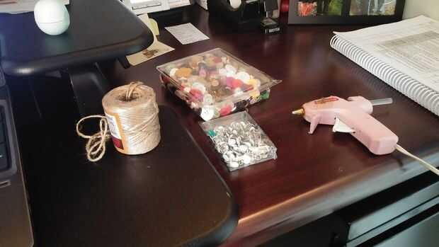 -Tela (usé tela sobrante tenía por ahí de proyectos anteriores, pero usted puede comprar su opción de estilo en cualquier pasatiempo o almacén general)
