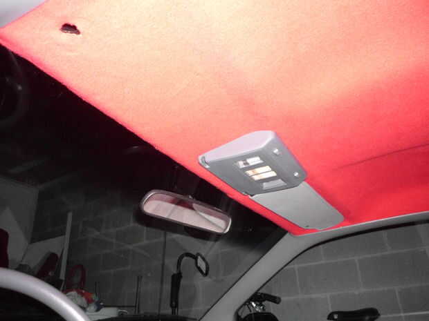 11. después de que el techo esté seco, prepárese para la instalación. Comprobar para ver todos los rincones están firmemente pegados (y grapados) en lugar. Comprobar que corta los agujeros donde van los viseras de sol y perchas y luz.