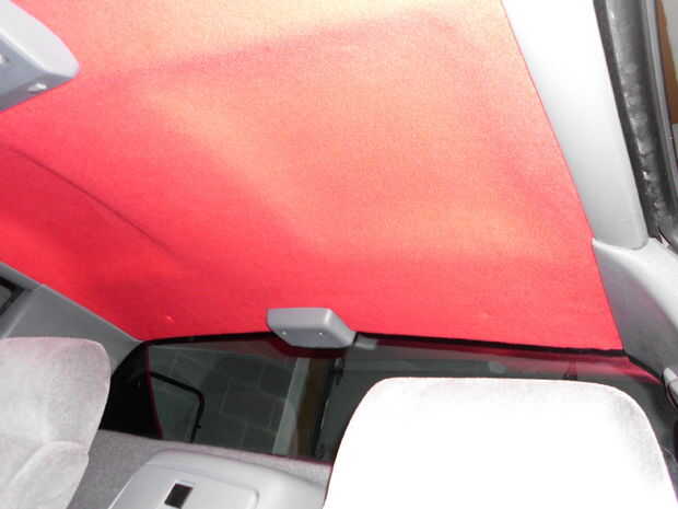 5. material de tapizado nuevo - sentí en mi primer headliner y algodón en mi 2 º uno. Las fotos son de fieltro rojo. He comprado 2 yardas de este material en JoAnn telas para cerca de $8. Puede conseguir a tela allí o en Walmart. 2 yardas debe ser suficiente para un coche. Tal vez 3 yardas para una van o SUV. * Si no estás seguro, mida primero * permite unas pulgadas extra para los bordes de relleno debajo de la moldura