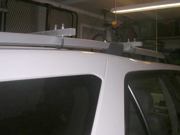 2. Ajuste la abrazadera en ángulo por debajo de los rieles de techo tocar aluminio y marque con lápiz.