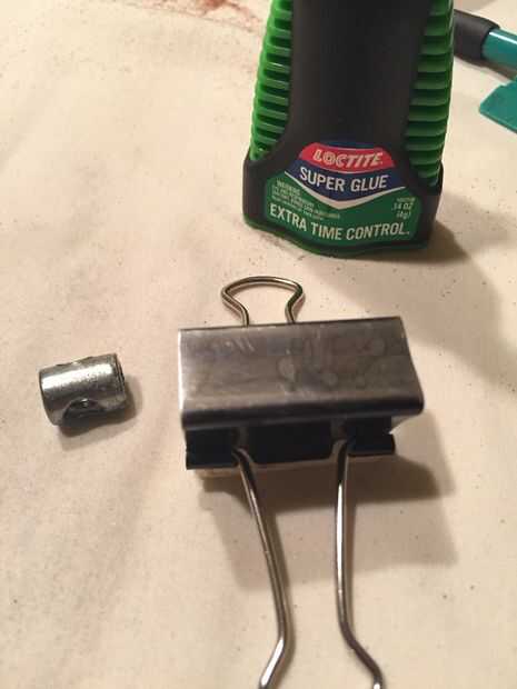 Luego, aplique el adhesivo de su elección (utiliza pegamento en la parte inferior y luego poner pegamento en los lados) a la tuerca y coloque la tuerca en la parte inferior del clip binder