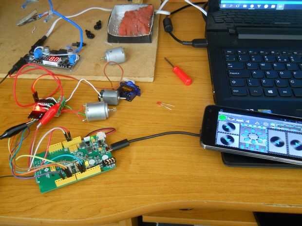 Utilicé algunos motores para probar el circuito y el coed y funcionaba bien. En el primer lanzamiento había algunos número de servo, pero después de esto funcionó sin problemas. El sonido a través de los auriculares es muy bueno. Mira el video si quieres ver cómo funciona. Con este paso terminé la explicación e instrucciones para el uno de LinkIt. Ir a la parte del mecanismo para ver como construir el droide.