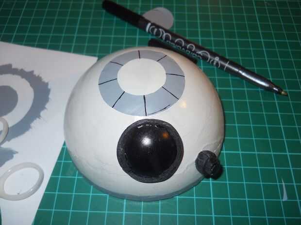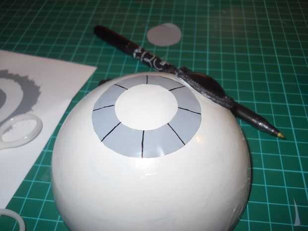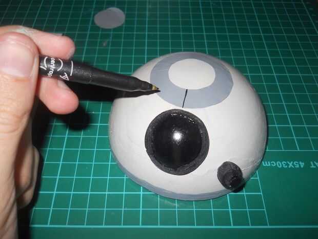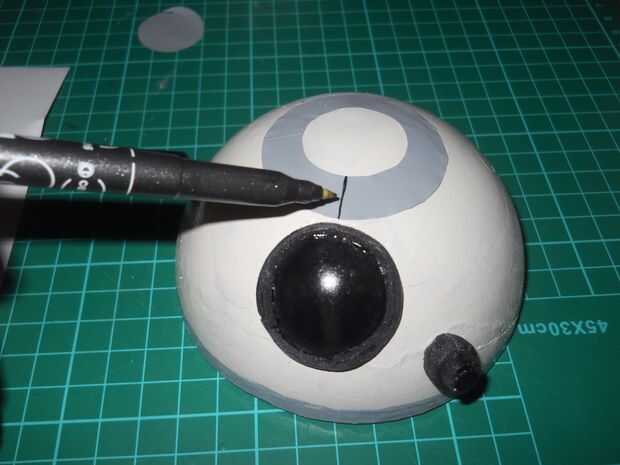 Poner el círculo gris en la cabeza y luego con un marcador hacer unas líneas en él.