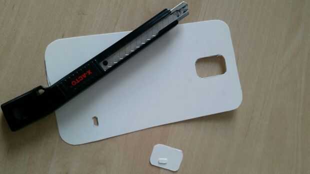 Usé las tijeras para recortar el contorno más grande. Está bien ir un poco dentro del contorno, ya que se trazaron el exterior de la caja. Después corté la forma caso, usé mi cuchillo x-acto para recortar las zonas de altavoces y cámara. Esta parte puede variar en el tipo de teléfono que tienes.