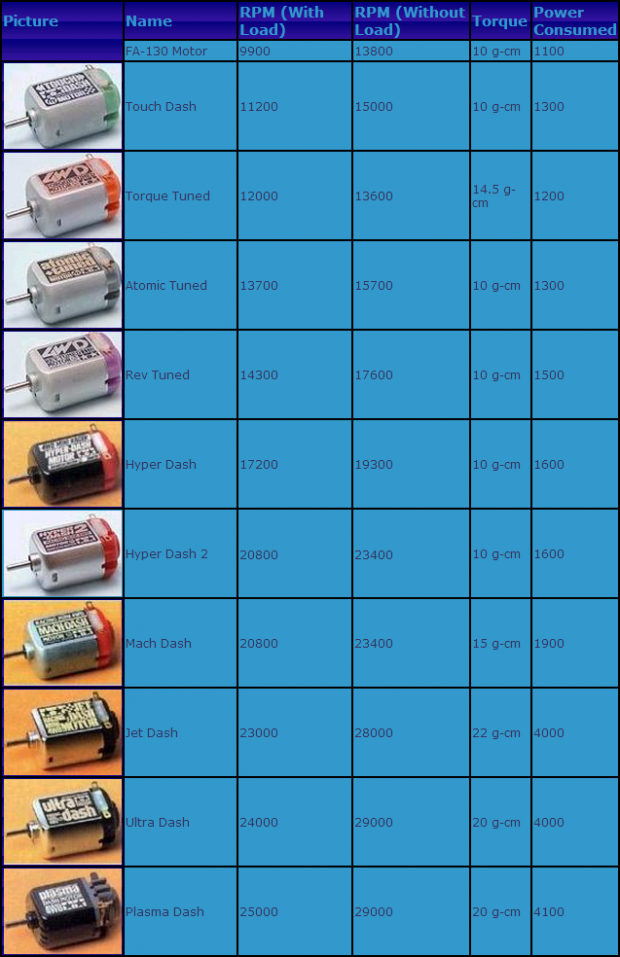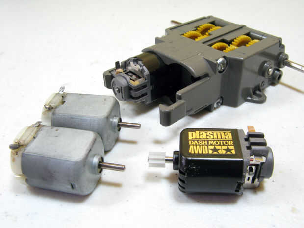 Si ustedes son curiosos, la caja de engranajes de doble viene con dos motores stock Mabuchi FA1-30. Funcionan con voltajes entre 1.5v - 3v. Dominarlo daría lugar a la quema de los pinceles. Hay una hoja de datos para descargar a continuación con una descripción más detallada de los motores.