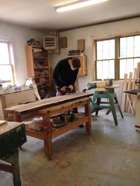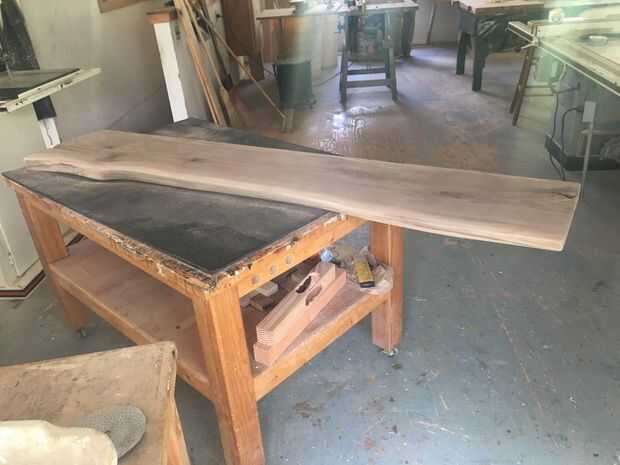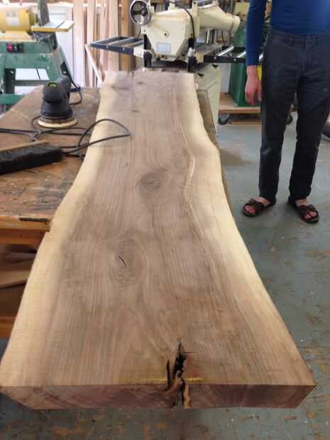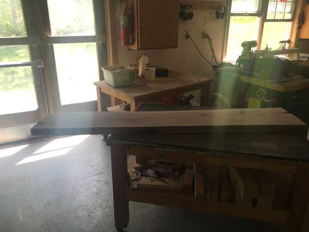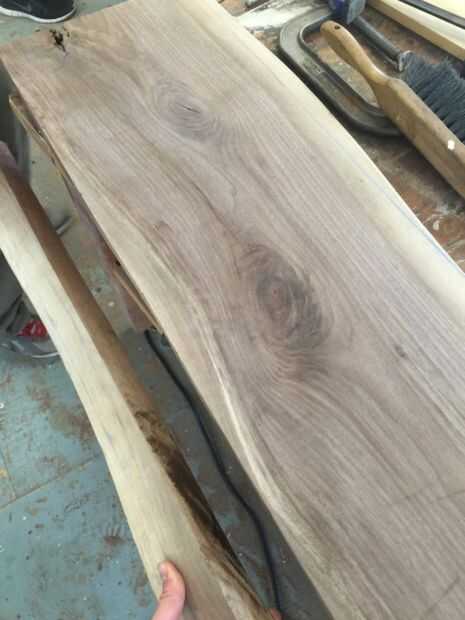La madera que elegimos es nogal y vendrá hacia fuera de 14 pulgadas de la pared. Es seis pies de largo y dos pulgadas de espesor. Vamos a perforar algunos agujeros de 2 pulgadas para los puertos de carga a través del hilo de rosca. La bartop se montará en los montantes de la pared con fuertes soportes en L con tornillos.