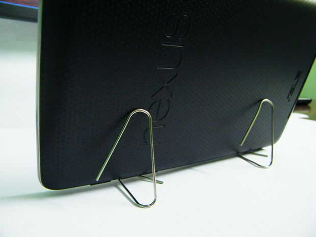 También he descubierto que si utiliza dos de estos soportes de clip de papel usted fácilmente puede apoyar una tableta en modo horizontal.