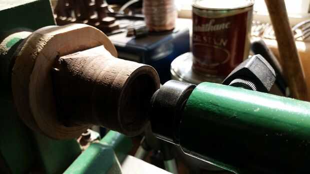 1. mandril de una pieza si madera. Gire un eje apenas más ancho que su centro vivo.
