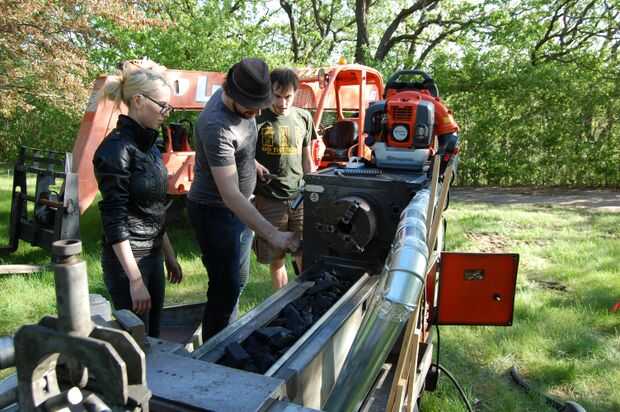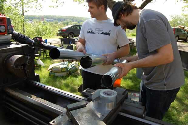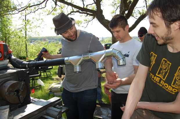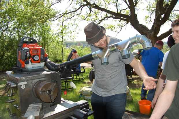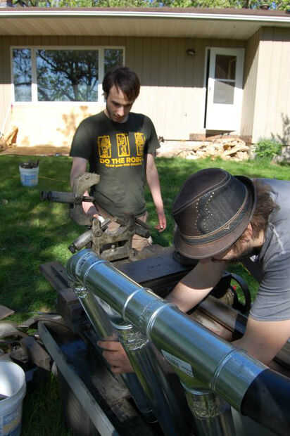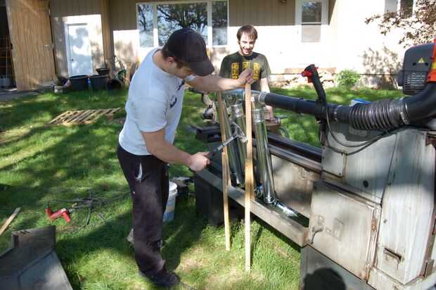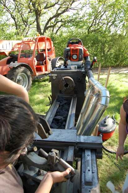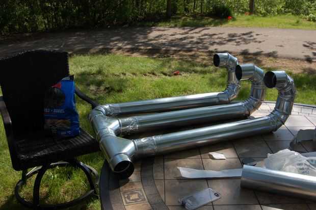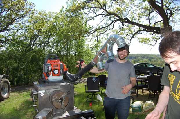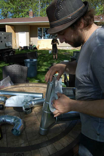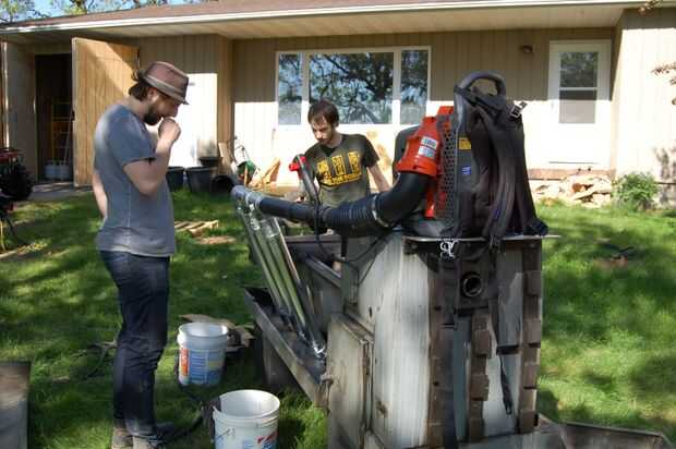 Crear un sistema colector para la leafblower. Esto requerirá cinta aluminio y conductos. El objetivo es que el colector ir de la leafblower en la parte inferior de la rejilla, sosteniendo los carbones. Por supuesto puede experimentar con esto, pero las imágenes muestran la versión de la misma.