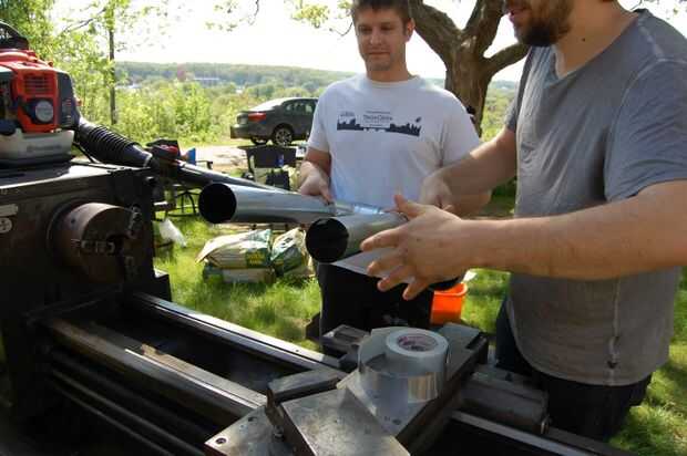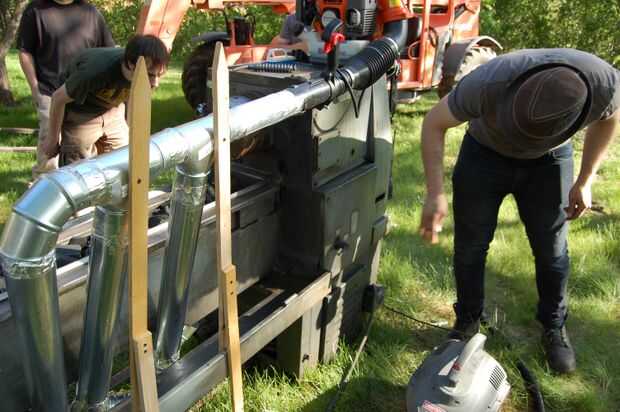 Prueba en cada punto para asegurarse de que usted está recibiendo suficiente flujo de aire. También puede necesitar construir una estructura de soporte temporal para mantener el conducto en su lugar. Se utilizaron estacas de la jardinería y la guía simple.