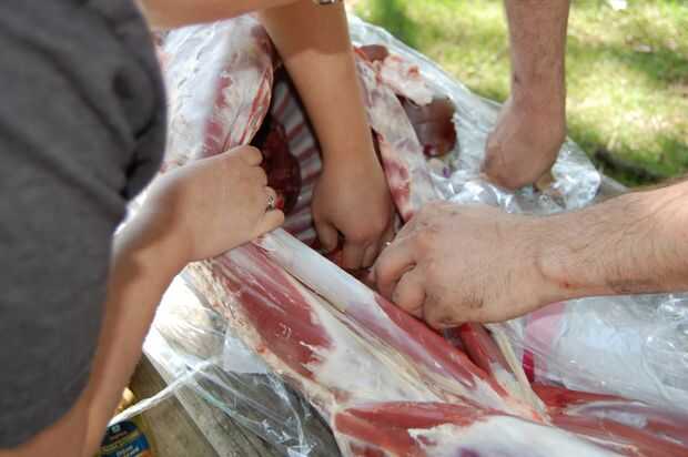 • Cuando usted consigue un cordero de la carnicería, una buena cosa a saber es su peso vivo - que comienza alrededor de 80 libras y puede ir hasta 120 libras. Esto se traduce en 20-40 libras de carne real. Nuestro de pasó a ser en 100 libras.